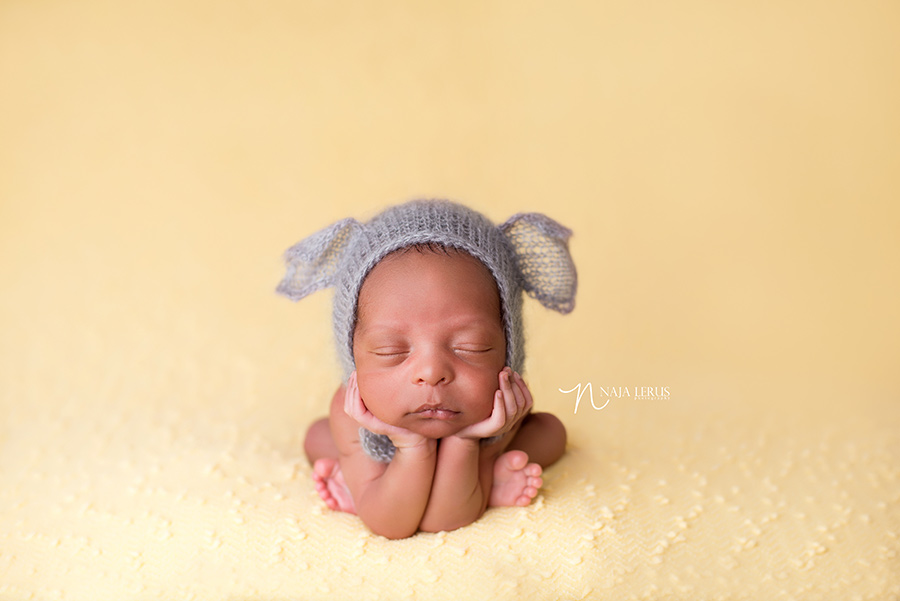 Huge thank you to The Knitting Bitty, who makes all of my knitted clothes and wraps for my newborn clients, and she made this adorable teddy bear hat and lace shorts in the first image of John on the chest.